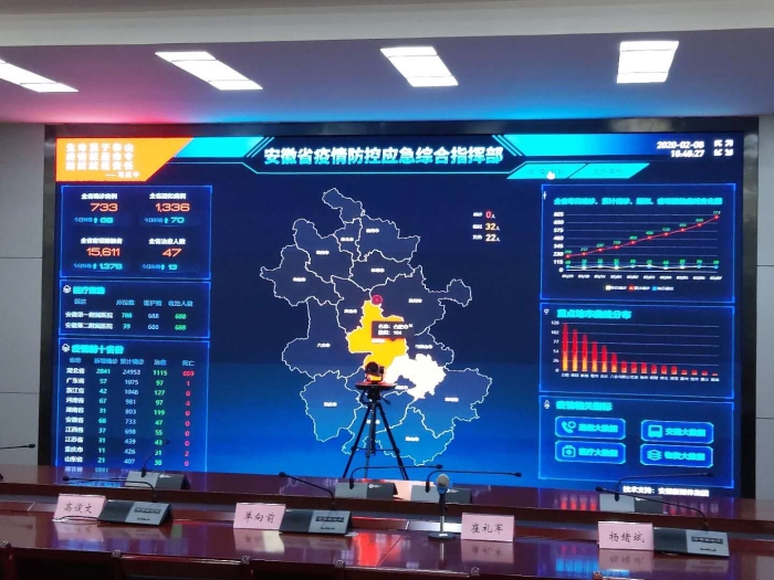 依托“安徽云”平臺,開發(fā)的“疫情應急防控數(shù)字可視化決策系統(tǒng)”